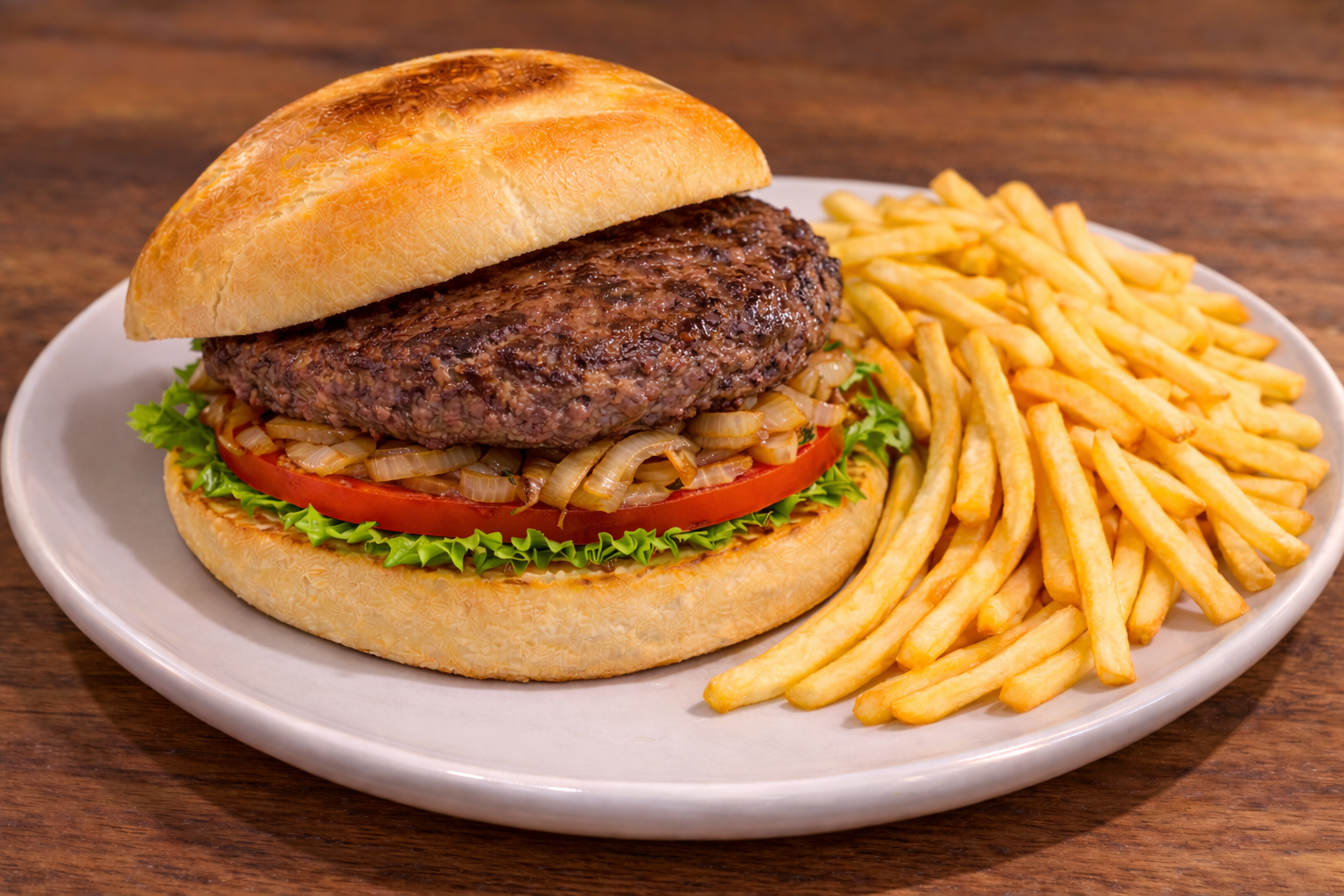 Carne, lechuga, tomate, cebolla + patata frita